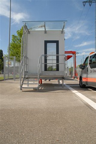 Kautschukboden, Klimatisierung und Elektro-Ausstattung nach Schweizer Normen, spezielle Türen und Fenster, zusätzliche Außen- und Innenjalousien, Scheinwerfer und Außenbeleuchtung, Ablagen und Vordachkonstruktionen