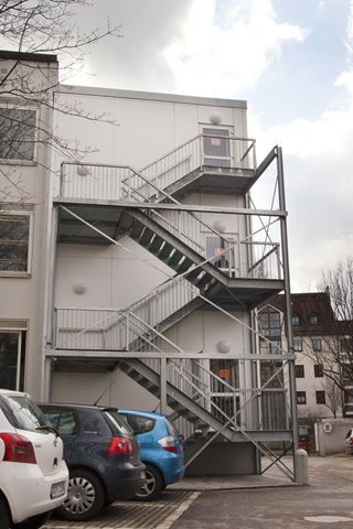 Zusätzlich 3-geschossiger Treppenturm als zweiter Fluchtweg.