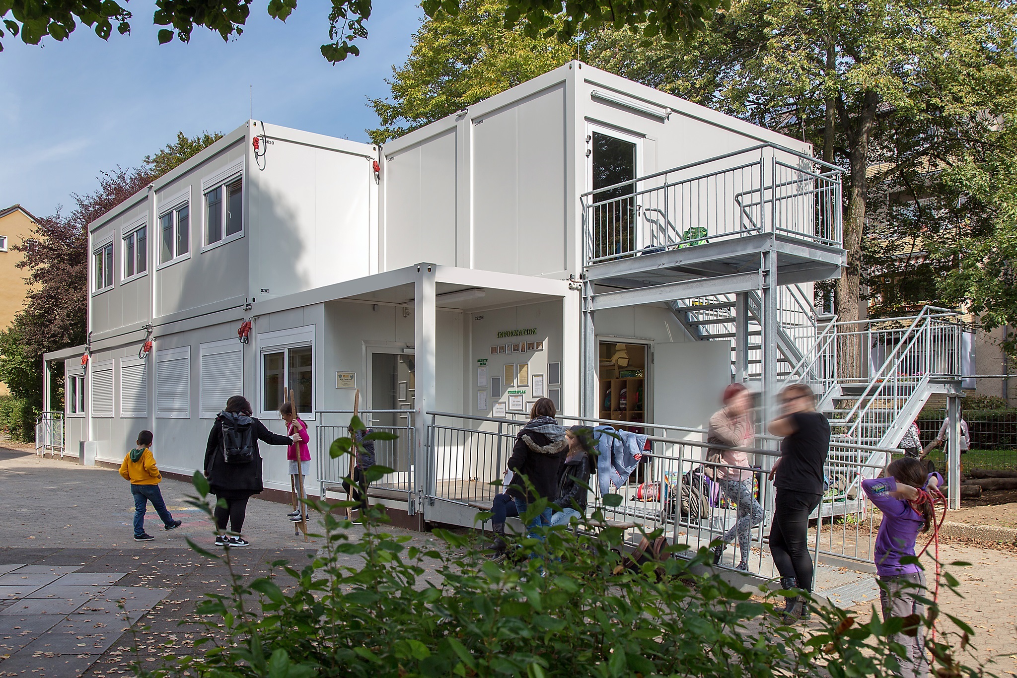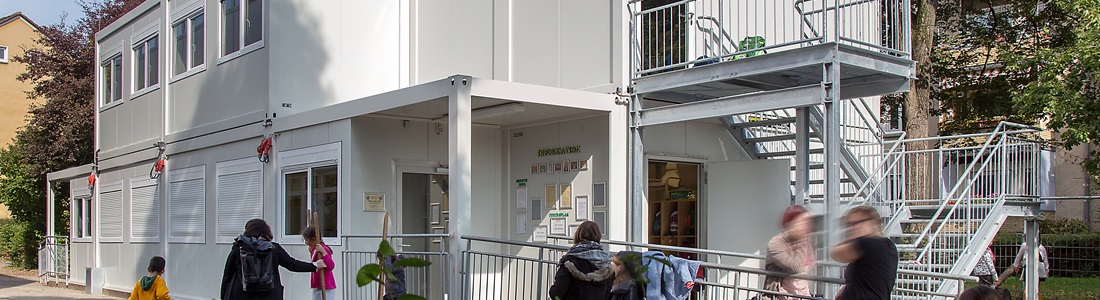 Deckungsgleiche Aufstockung eines 2klassigen Schulpavillons in Containerbauweise. (2 Klassenräume mit je 1 Nebenraum).