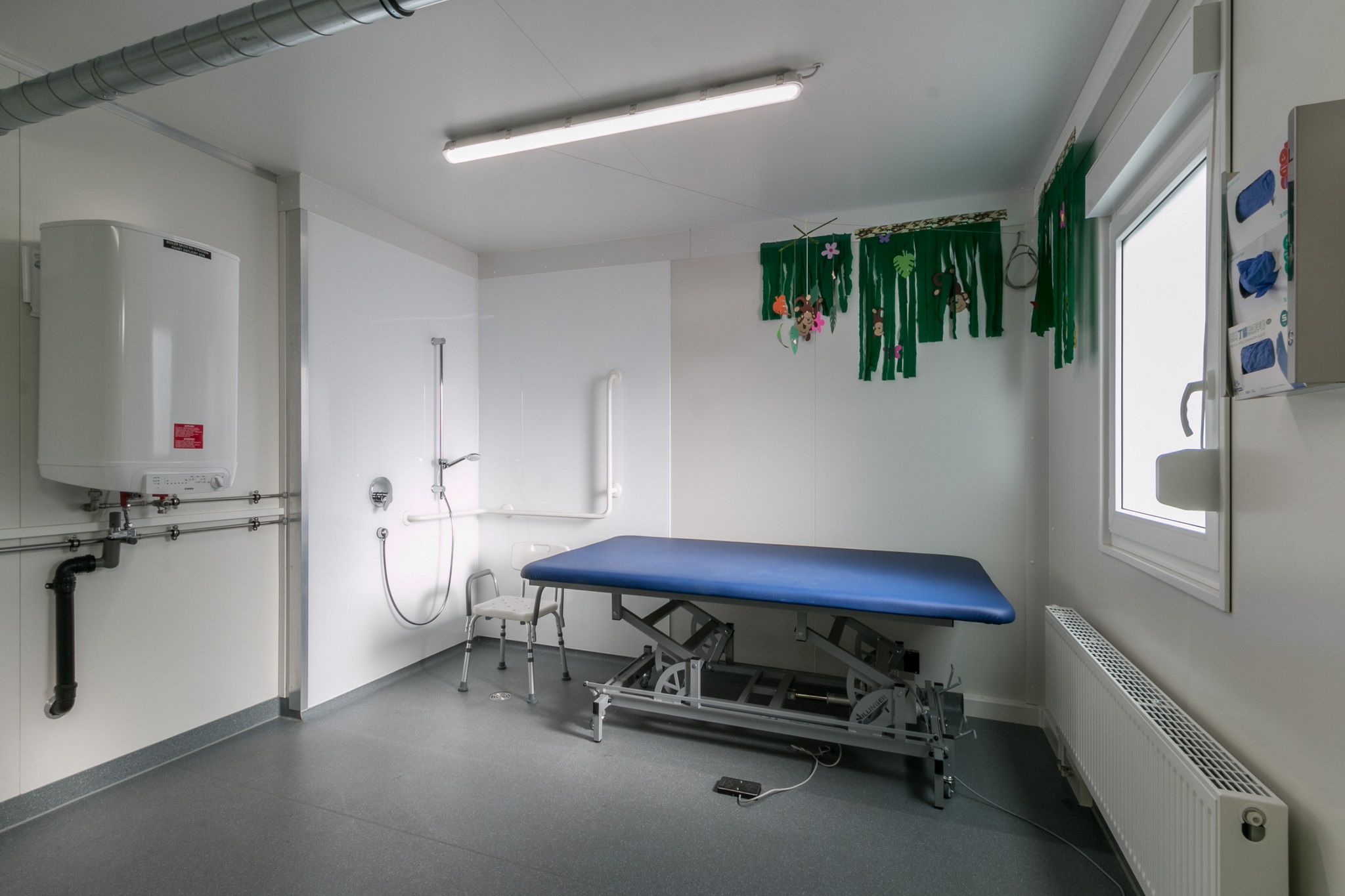 E-Installation, Gastherme mit Warmwasserbereitung, EnEv, Beleuchtung, behindertengerechte Pflegedusche und WC, für Mädchen und Jungen.