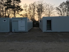 eingeschossig als Büroanlage mit Empfangsbereich, Küchenzeile, Spül- und Ausgussbecken. Münzzählgerät für Waschtrockner, einschließlich Lagercontainer, E-Installation, Beleuchtung, E-Heizung, Klimagräte, Möblierung