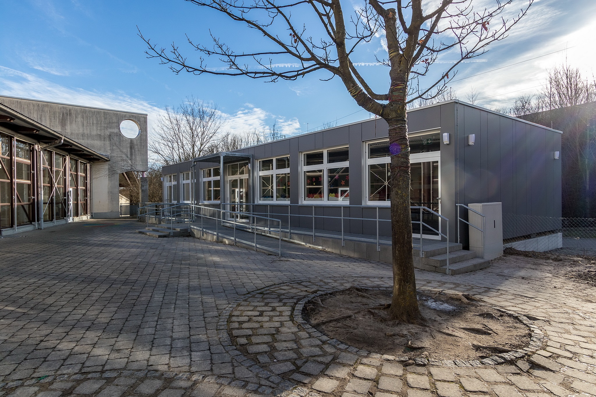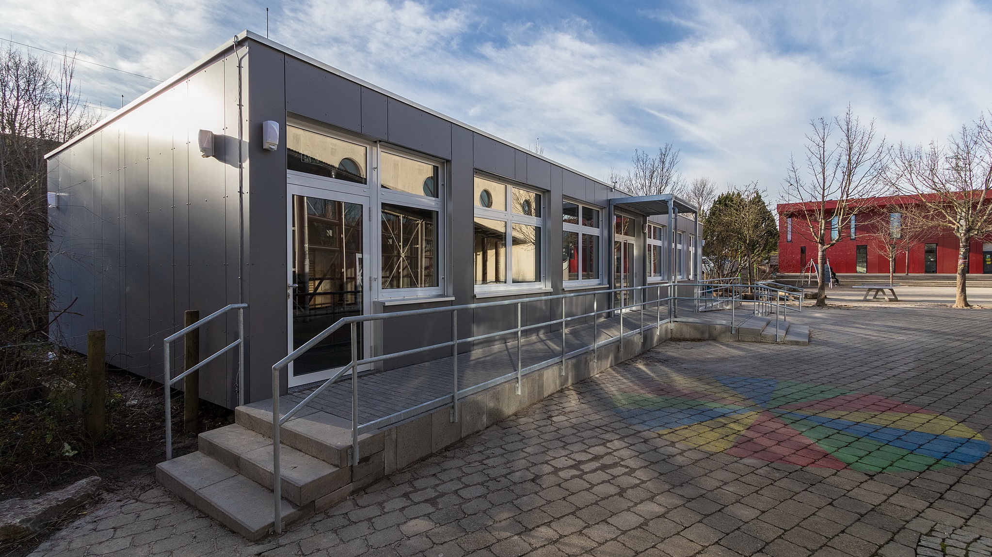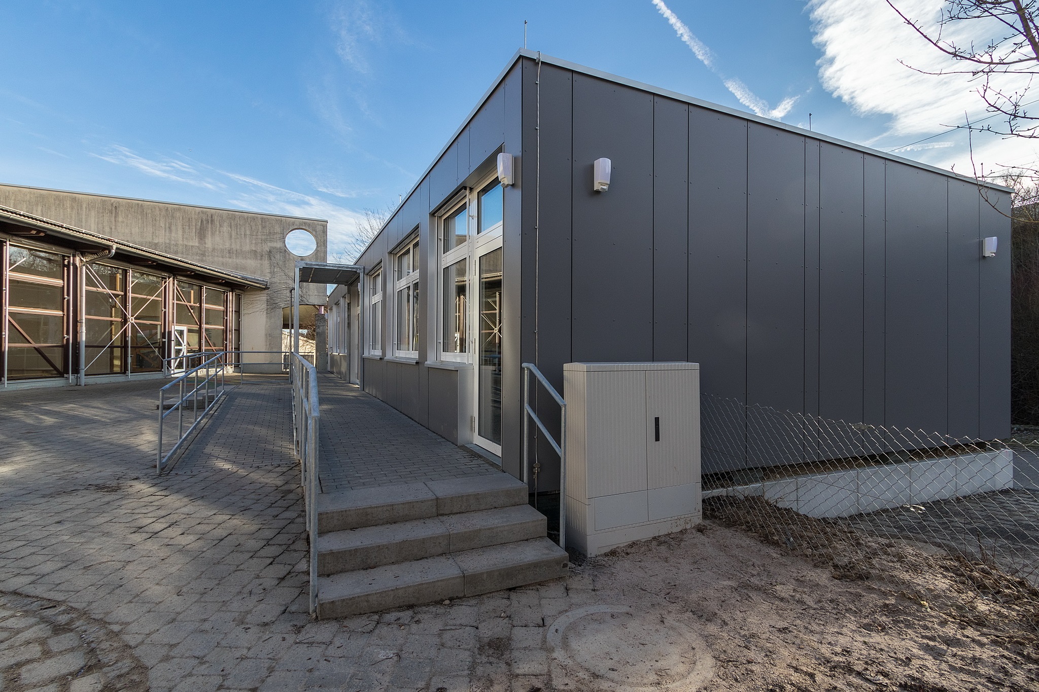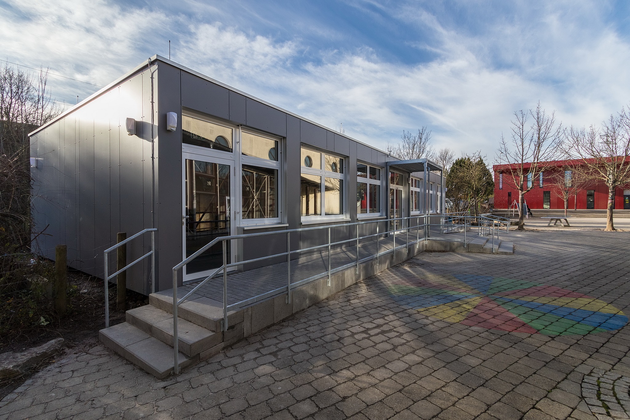 7 Module als Schulanlage/2 Klassenzimmer, Vorraum als Garderobe, Technikzentrale, 6 Module als Klassenzimmer, Eingangsbereich als Vorraum mit Garderobe und Technikraum, Innenhöhe bei allen Modulen 2,85 m im Licht