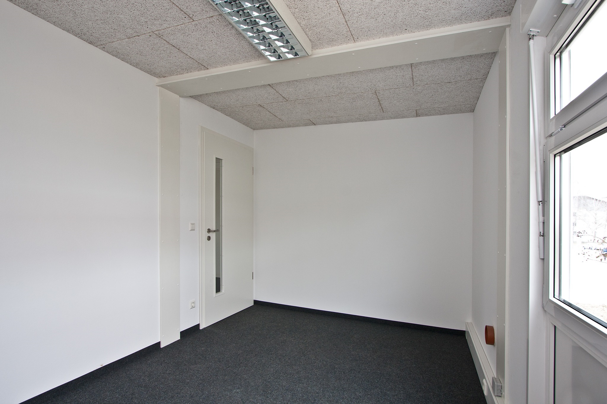 24-Stunden-SB-Bereich, Service- und Kundenbereich, 2 Beratungsräume, Technikbereich, Aufenthaltsraum mit Küche, WC, Trespa-Verkleidungen, Heraklithdecke, verzinkte Rampe mit Podest und Treppe