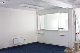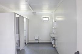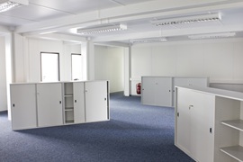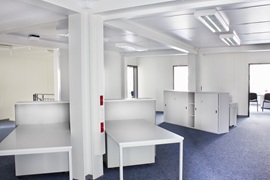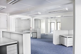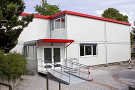 Schlüsselfertige Erstellung eines provisorischen Bürogebäudes mit SB-Bereich und zwei Kassenplätzen nach UVV