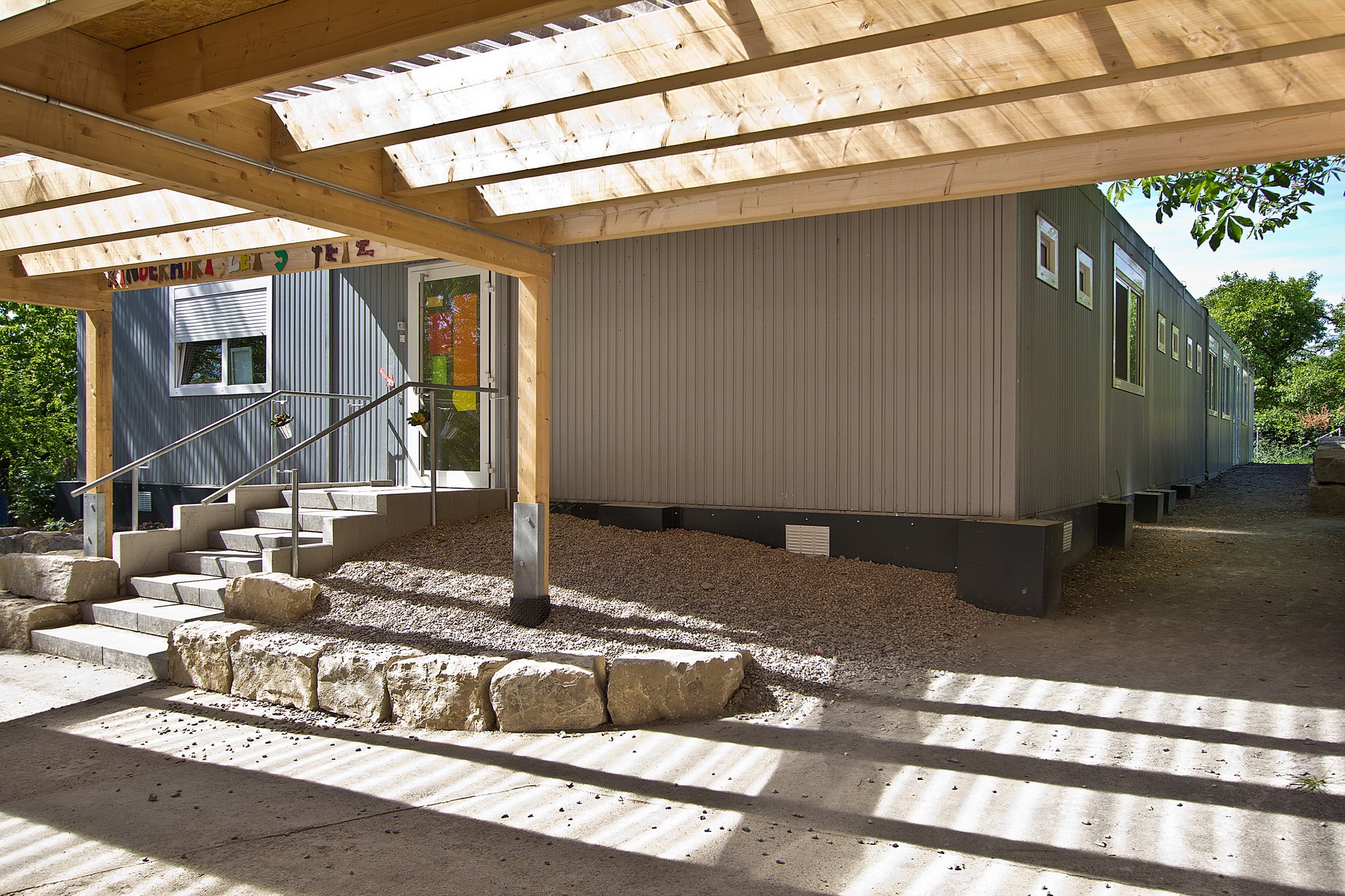 Schlüsselfertige Erstellung einer Erweiterung mit 4 Gruppenräumen unterschiedlicher Größe einschließlich Sanitärbereich und Verteilerküche, einschließlich Gründung und Erschließungsarbeiten