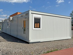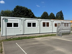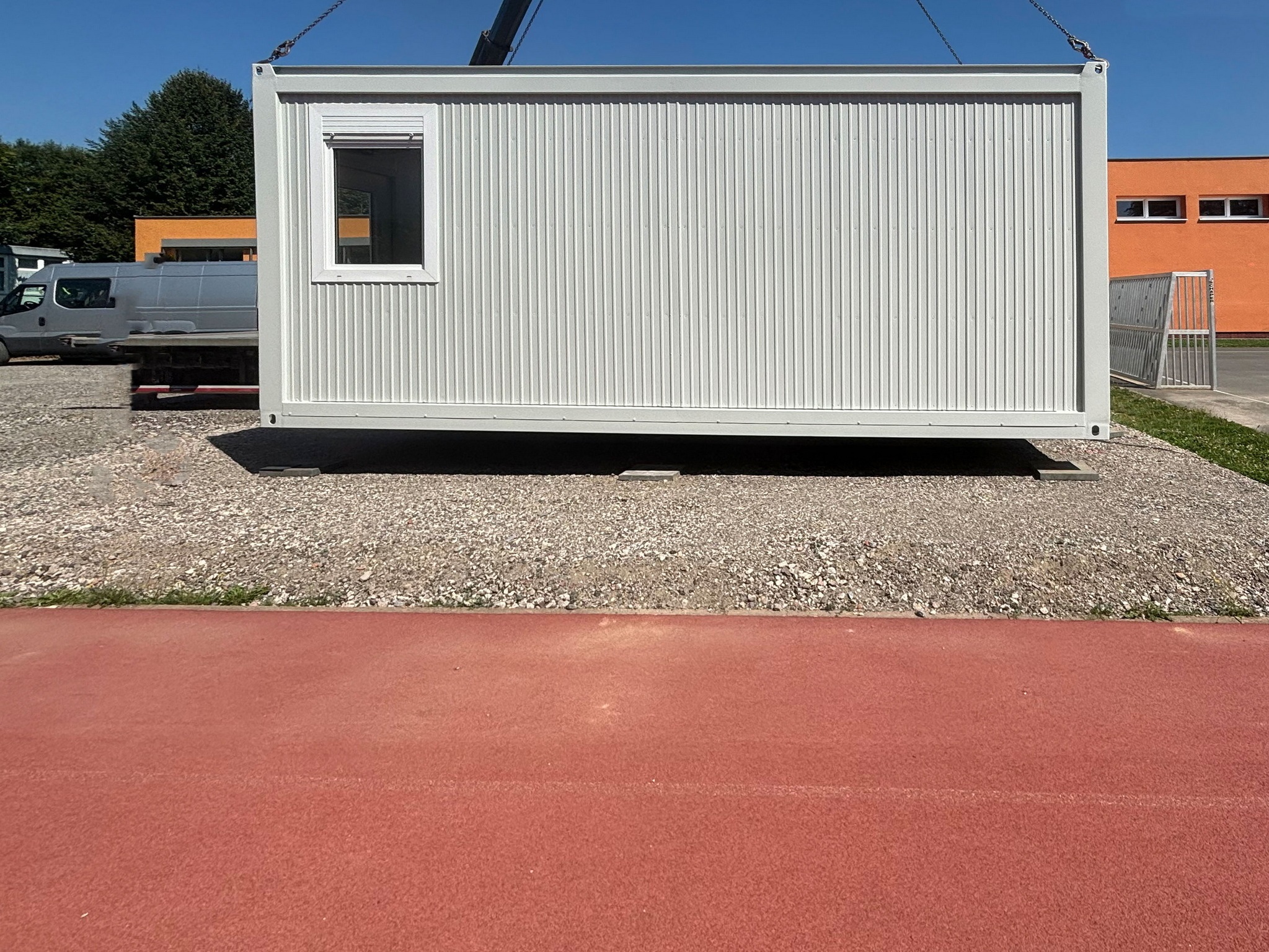 5 Container je 6,00x3,00x2,80m, Überdachung der Eingangsbereiche, Sockelverkleidung, Unterkriechschutz, Blitzschutz