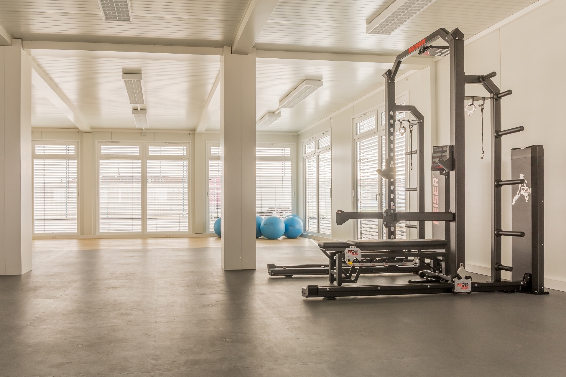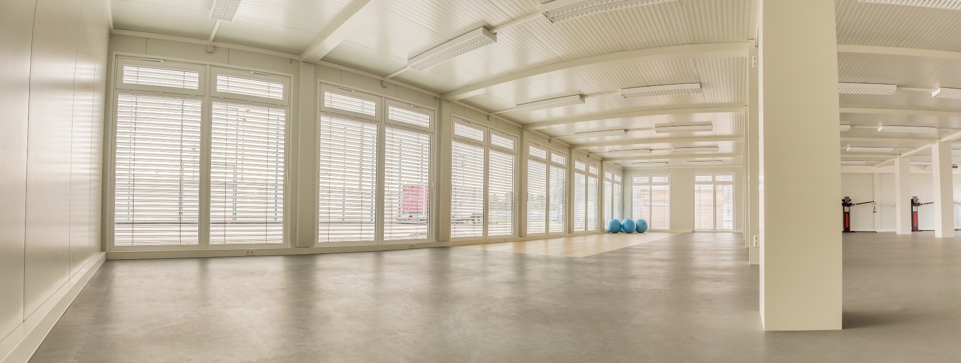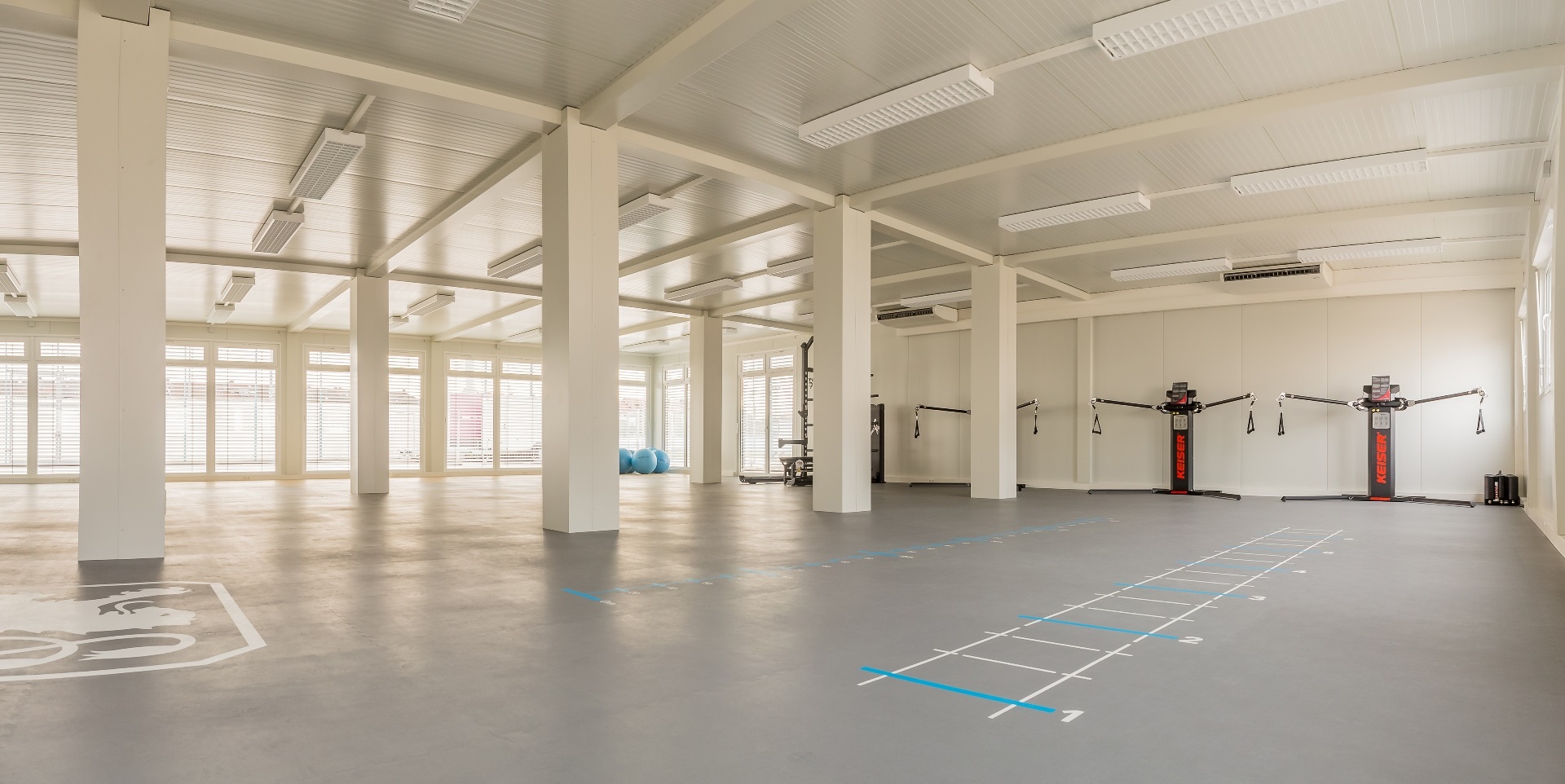 Außenbeschattung mit Raffstoreanlagen inkl. Windwächter, Klimatisierung, Sportbodenbeläge