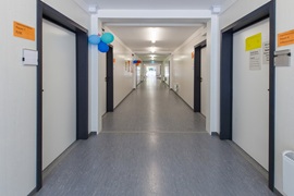 Akustikdecken, Warmwasserheizung, Außenverschattung mittels Wind- und Sonnenwächter, Blitzschutz, behindertengerechter Zugang, Panikbeschläge, Fluchtwegpiktogramme, rauch- und schalldichte Türen, Medienschienen an den Innenwänden, Fenster mit Öffnungsbegrenzer, Linoleumboden, umlaufende Dachentwässerung, Dachattika.