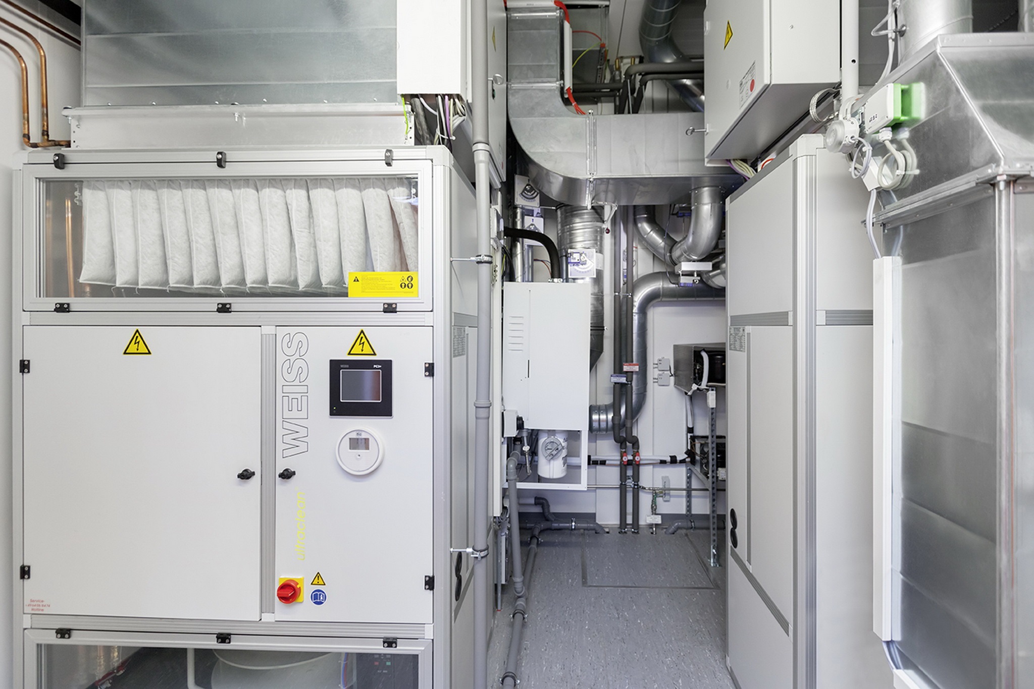Heizung, Klimatisierung, Lüftung gemäß der geforderten Reinraum-Klassifikation, Sanitärinstallation, Windfang und Schleusenzonen