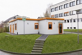 Modulbauweise aus 5 Modulen in Sonderbauweise mit Sonderabmessungen, Außenhöhen 3,35 m bzw. 3,75 m für Technikmodul