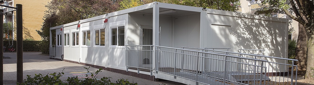 Container-Anlage Für Karl-von-Ibell-Schule Temporärer Pavillon für ca. 5 Jahre