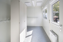 Eingeschossiger Schulpavillon für 2 Klassenräume, je mit Windfang und Nebenraum für Garderobe