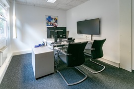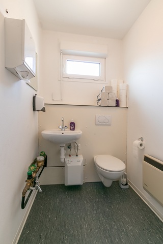 Fundamente, Heizkörper, Klimageräte, Fenster mit ISO Verglasung in F30 Ausführung im Technikraum, Elektroinstallation mit Beleuchtung, Rauchmelder, Überdachung, Treppe, Podest, Rampe, WC, Küche, Akkustikdecke.