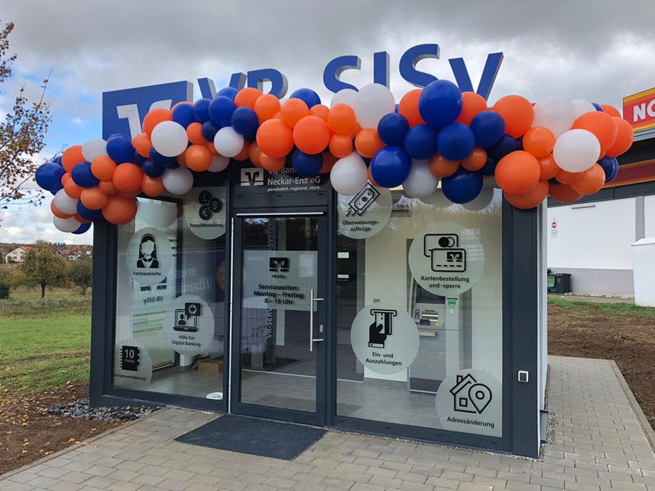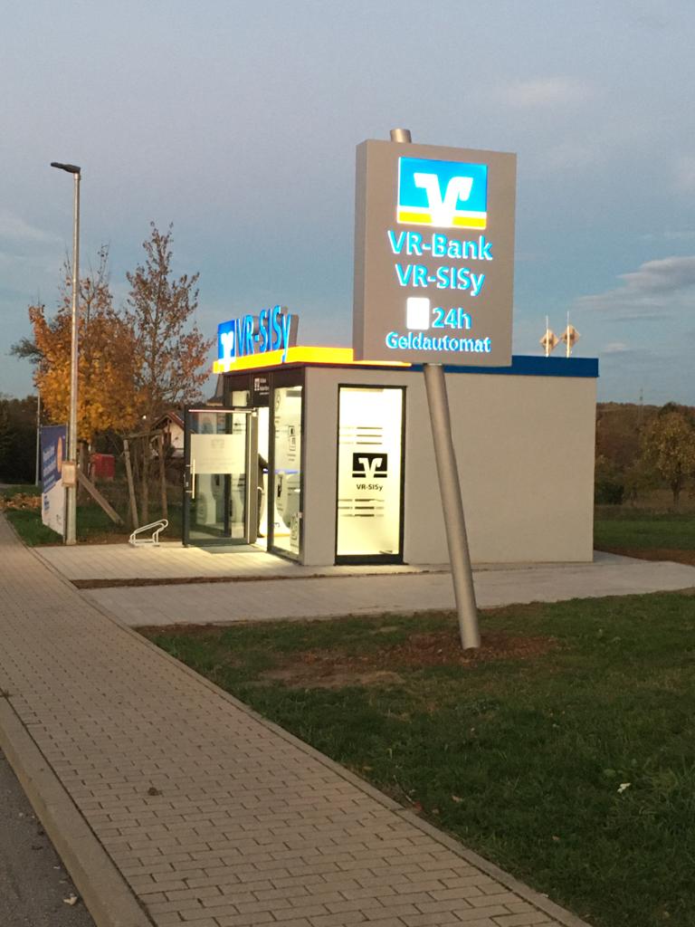 Ausstattung: Aluminiumfassade auf der Eingangsseite, 3-seitige Putzfassade, RC3 Ausführung Technikraum mit Betonboden und T30 Türe mit Zugangskontrolle, SB Raum mit Fußbodenheizung, Fliesenboden, abgehängter Decke, mit LED-Beleuchtung, Vorbereitung für SiSy Einbautechnologie mit online Beratung. Tapezierte Wandflächen, Ausführung nach EnEV, Klimatisierung, Blindboden, Revisionsklappen, Werbebeleuchtung am Dach. Zugangstüren und Fensterelemente in Aluminium bauweise pulverbeschichtet und VSG Verglasung als Sonnenschutzglas, Automatiktüre über Tastfunktion, Baugesuchserstellung.